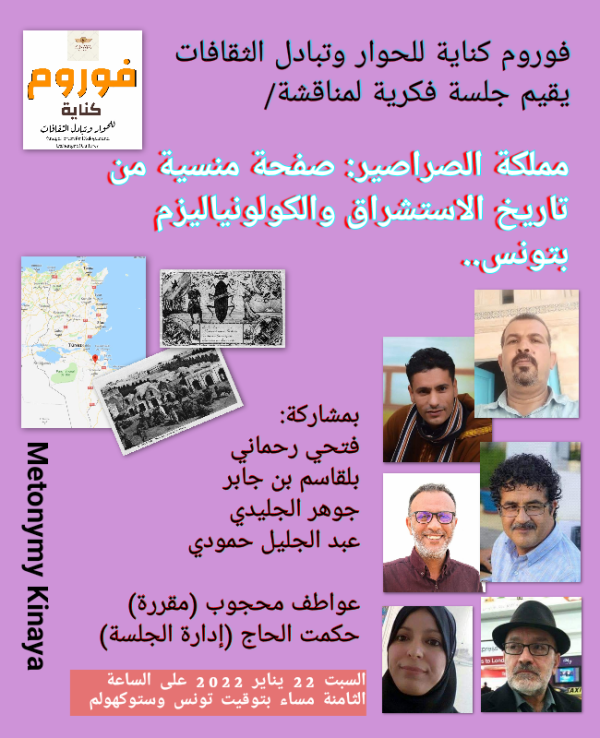"تحت شمس أفريقيا الحارقة، وفي رمال صحاريها اللامتناهية، من قفصة إلى دوز إلى مدنين، ومن قابس إلى جرجيس حتّى بنقردان وتطاوين، لا يسود إلاّ سِيدِي الصَّرصور.." (من أناشيد الفيلق الاستعماري الفرنسي بشمال أفريقيا). .. ينوي "فوروم كناية للحوار وتبادل الثقافات" بالتعاون مع "دار كناية" للنشر والتوزيع، و"نورث ماغ بريس"، استصدار كتاب جماعي يضم بين دفتيه... المزيد ←