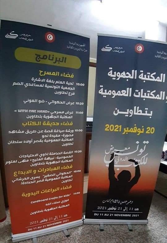 … على هامش الدورة 36 لمعرض تونس الدولي للكتاب الملتئم للفترة من 11 إلى 21 نوفمبر الحالي، وتحت إشراف إدارة المطالعة العمومية بوزارة الثقافة، وبتنظيم من المكتبة الجهوية وجمعية أحباء الكتاب، انطلقت رحلة ثقافية من ولاية تطاوين على متنها ثلة من القائمين على الشأن الثقافي ومبدعي الجهة. وقد تم ضبط برنامج متكامل يستهدف الطفل بدرجة أولى، وسيتم تقديم فقراته تباعا في الفضاء المخصص للطفل بمعرض الكتاب بالكرم طوال يوم السبت 20 نوفمبر 2021. وبحضور وتفاعل أعضاء الوفد الثقافي، وهم كل من السيدات والسادة مع حفظ الألقاب: علي بودربالة، علي الثابتي، إيمان زنزانة، منصور بوليفة، محمد بوزرارة، آمنة التريكي، فتحية العيدودي، وعواطف محجوب، وغيرهم من الفاعلين في الشأن الثقافي في الجهة، تنطلق الأنشطة من فضاء المسرح، أين يرفع العلم على أنغام النشيد الوطني مترجما إلى لغة الإشارة بتأطير الجمعية التونسية لمساعدي الصم والبكم فرع تطاوين. ثم يقدم الحكواتي ضو العوني عرضا حكائيا بعنوان “البوسعدية” على طريقة “قوّال الحكايا” على أنغام المزمار والطبل. ويذكر ان البوسعدية هي حكاية من الحكايات الشعبية الموروثة التي تقص لنا حادثة خطف ابنة رئيس قبيلة من قبائل افريقيا وتسرد تفاصيل سبيها وبيعها جارية وسعي والدها لاستعادتها بشتى الطرق. حكاية تحمل في طياتها دعوة إلى التآخي وإحلال السلم وحسن التجاور ونبذ العنف والكراهية والتمييز العنصري. كذلك يقدم نادي الإنكليزية بالمكتبة الجهوية بتطاوين عرضا مسرحيا بعنوان “بيد واحدة”، ويتطرق هذا العرض إلى ظاهرة التنمر التي يتعرض لها ذوي الاحتياجات الخصوصية باعتبارهم أفرادا مختلفين تواجههم صعوبات الاندماج في المجتمع وتحدي الاعاقة. أما المكتبة العمومية بقصر أولاد سلطان فلها في البرنامج نصيب، إذ تنشط مفيدة لحو ورشة لصياغة قصة عن طريق مشاهد مصورة. هذا بالتزامن مع تقديم قصة “السلحفاة والأرنب” بطريقة صامتة موجهة إلى التلاميذ الصم، تترجمها المختصة نبيهة المليح إلى لغة الإشارة وأنجزت رسوماتها مسبقا الفنانة مهى لملوم، لينتهي هذا العرض بأغنية عن المربي مترجمة أيضا إلى لغة الإشارة من أجل ترسيخ قيمة المعلم ودوره الفعال في تربية الأجيال وتعليمها. ثم تتواصل فقرات البرنامج، إذ تقدم الحكواتية الصغيرة يسرى الخرشاني عرضا تستعرض فيه قصة السمكة المغرورة التي أودى بها غرورها إلى شباك الصيادين وذلك بتأطير من مديرة المكتبة المحلية بقصر حدادة السيدة منيرة سليم.