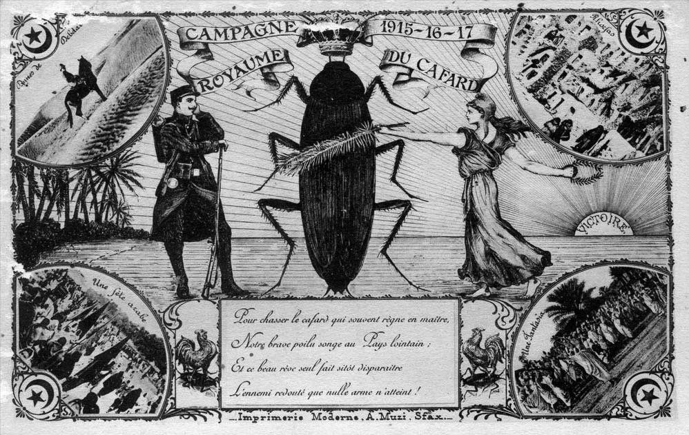 · مقال في صحيفة كانت تصدر في الجزائر اسمها “صدى الجزائر” وقد تضمّنت في عددها المنشور في 31 جانفي 1917 مقالا عن “مملكة الصراصير ” و “جيش الصرصور” الفرنسي ورحلته الشاقّة من الجزائر إلى الجنوب التونسي.