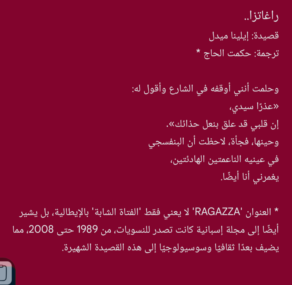 قصيدة للشاعرة إيلينا ميدل