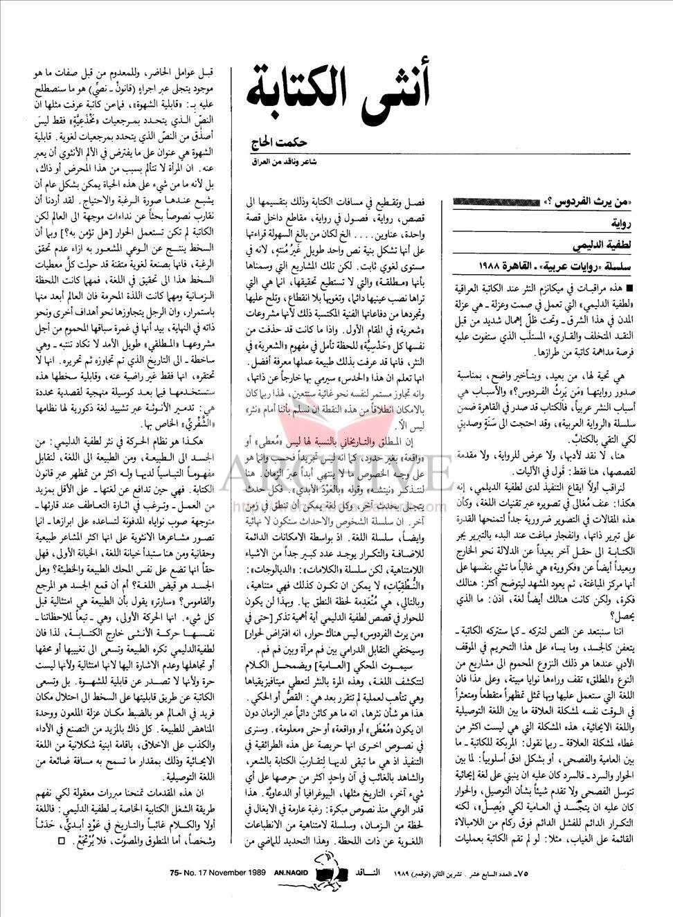 (المقال المرفق كان قد تم نشره عام 1989 في مجلة “الناقد” التي كانت تصدر بلندن)