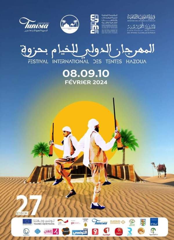 عبد اللطيف الدلال هنا حَزوة من ولاية توزر التونسية، الجميع حاضر لانجاز الدورة السابعة والعشرين للمهرجان الدولي للخيام. هنا احتفلوا ايام 8 و 9 و 10 فيفري/ شباط الجاري بحياة البدو وتاريخ المنطقة وسلطوا الضوء على السياحة الصحراوية والايكولوجية في بوابة الصحراء.خيل تعانق السماء، كثبان رملية متموجة صفراء كلون الذهب الخالص، خيام منتشرة هنا وهناك،... المزيد ←