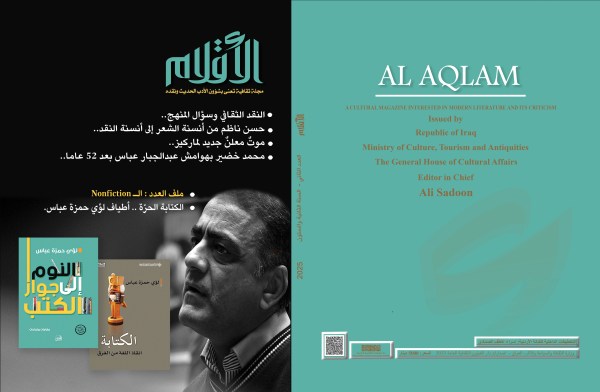 صدر ببغداد العدد الثاني لعام 2025 للسنة الثانية والستين من مجلة "الأقلام" التي تصدر عن دار الشؤون الثقافية العامة في وزارة الثقافة في العراق، متضمنا مقالي الموسوم: "الجثة تفكر: دراسة علائقية فوكوية في رواية أيام الفاطمي المقتول لنزار شقرون". فكل الشكر للأقلام ولكادرها وفريق عملها، خاصا بالذكر صديقي الناقد علي سعدون ali saadon، رئيس التحرير.... المزيد ←